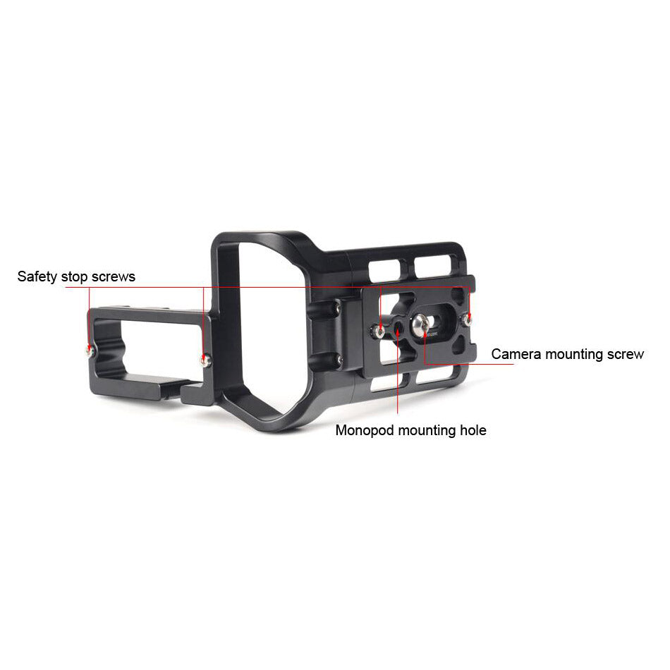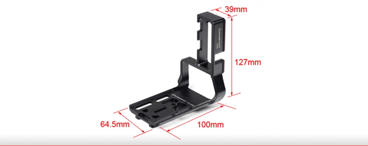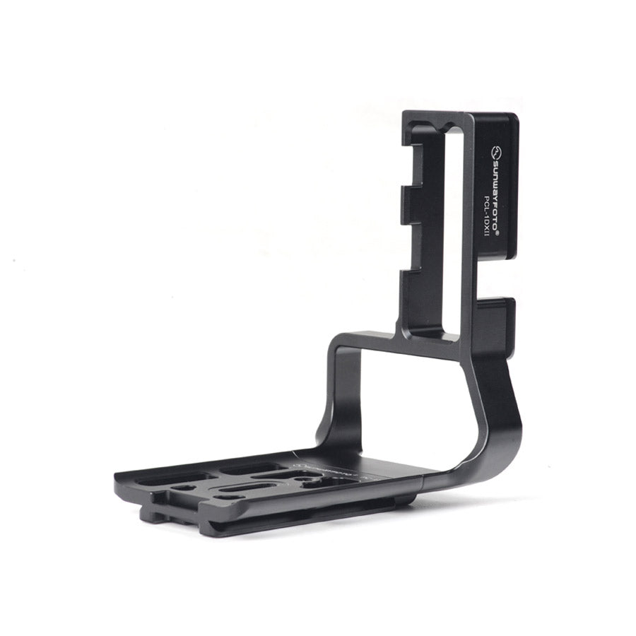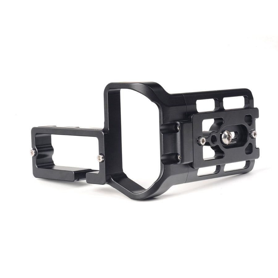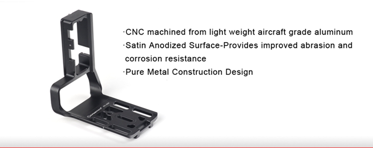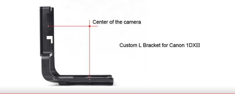 PCL-1DXII custom L bracket for Canon 1DXII, adopt CNC cutting machined from light weight aircraft-grade aluminum, stain anodized surface finish for better abrasion and corrosion resistant.