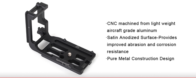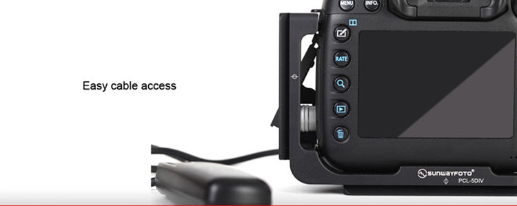 PCL-5DIV custom L bracket for Canon EOS 5D Mark IV body, adopt CNC cutting machined from light weight aircraft-grade aluminum, stain anodized surface finish for better abrasion and corrosion resistant.