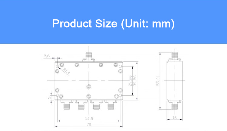 * Insertion Loss (Including Power Split Ratio): Typical 13.5dB and Maximum 14.0dB