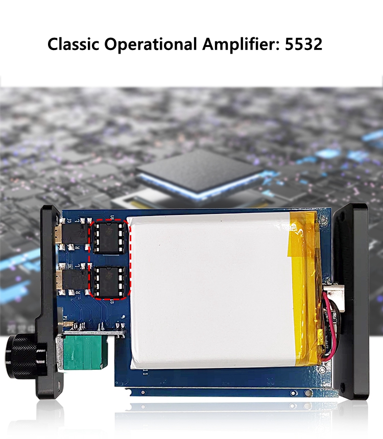 - It adopted for NE5532 operational chip for lower distortion and higher output power.