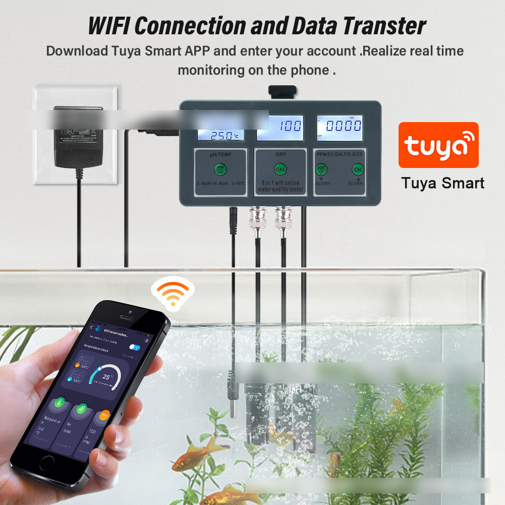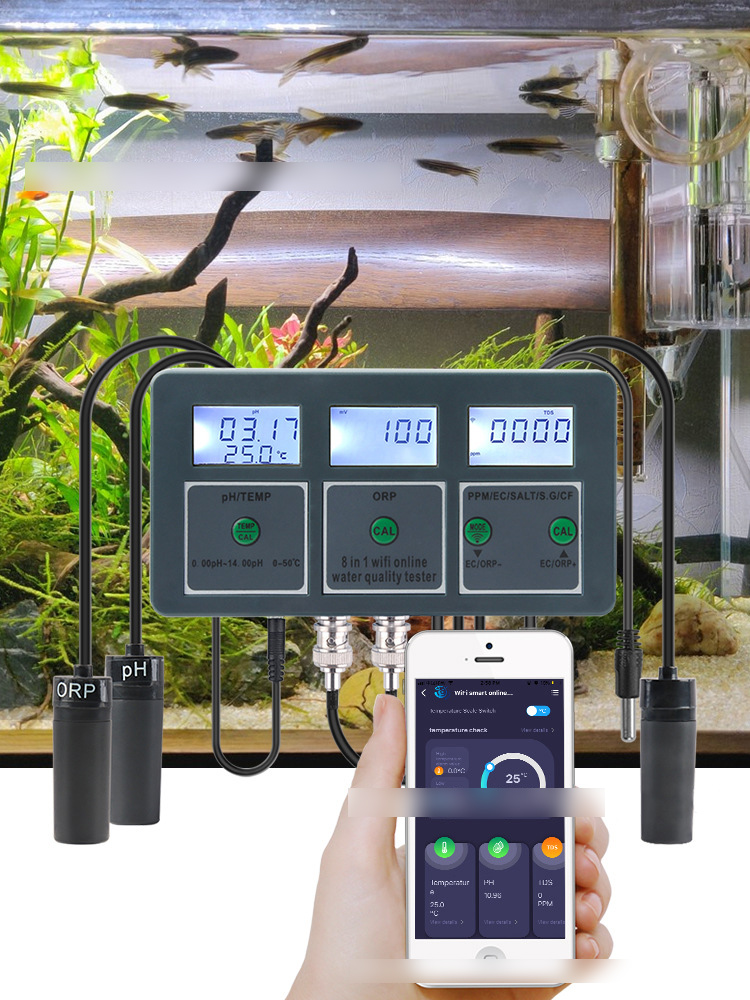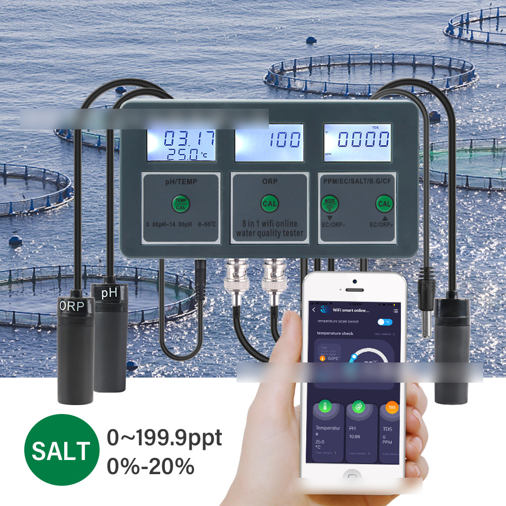 PH-W218 WiFi Cellphone APP 8-In-1 Water Quality Tester PH/ORP/EC/SALT Fish Tank Online Water Monitor