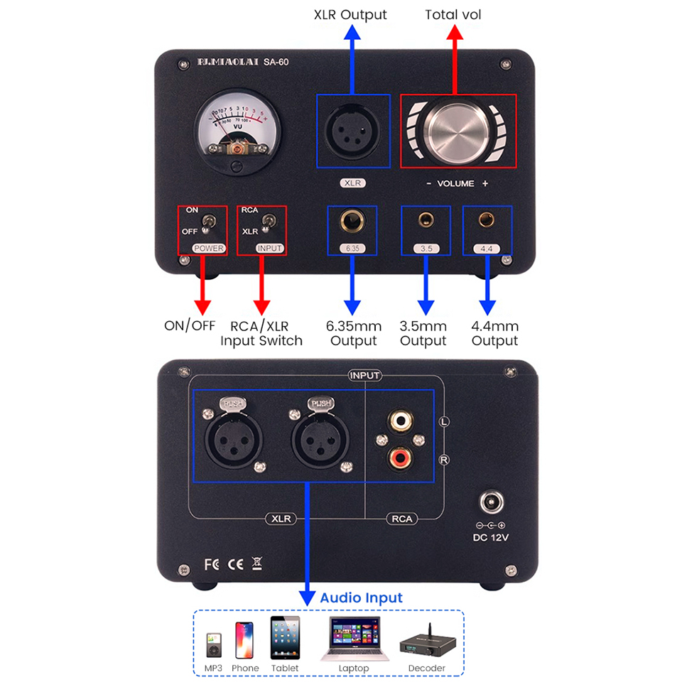 - Output signal: XLR balanced output, 6.35 output, 4.4 output, 3.5 output