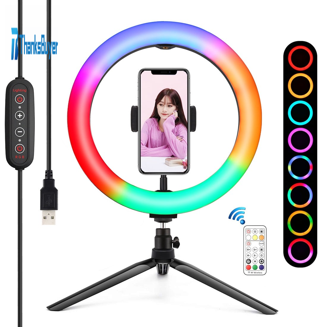 4. RGB colors lighting mode adjustable brightness for your choose, you can adjust the color and brightness very easily, excellent brightness can be achieved without installing extra colorful filters. Different colors of soft natural light illuminate your beauty in different occasions.
