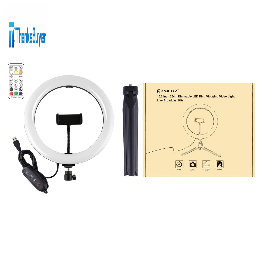 PKT3082B 10.2" RGBW Dimmable LED Ring Light Fill Light 168pcs LED Beads PU504B + 8.3cm Tripod Stand