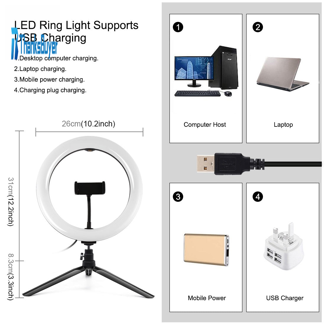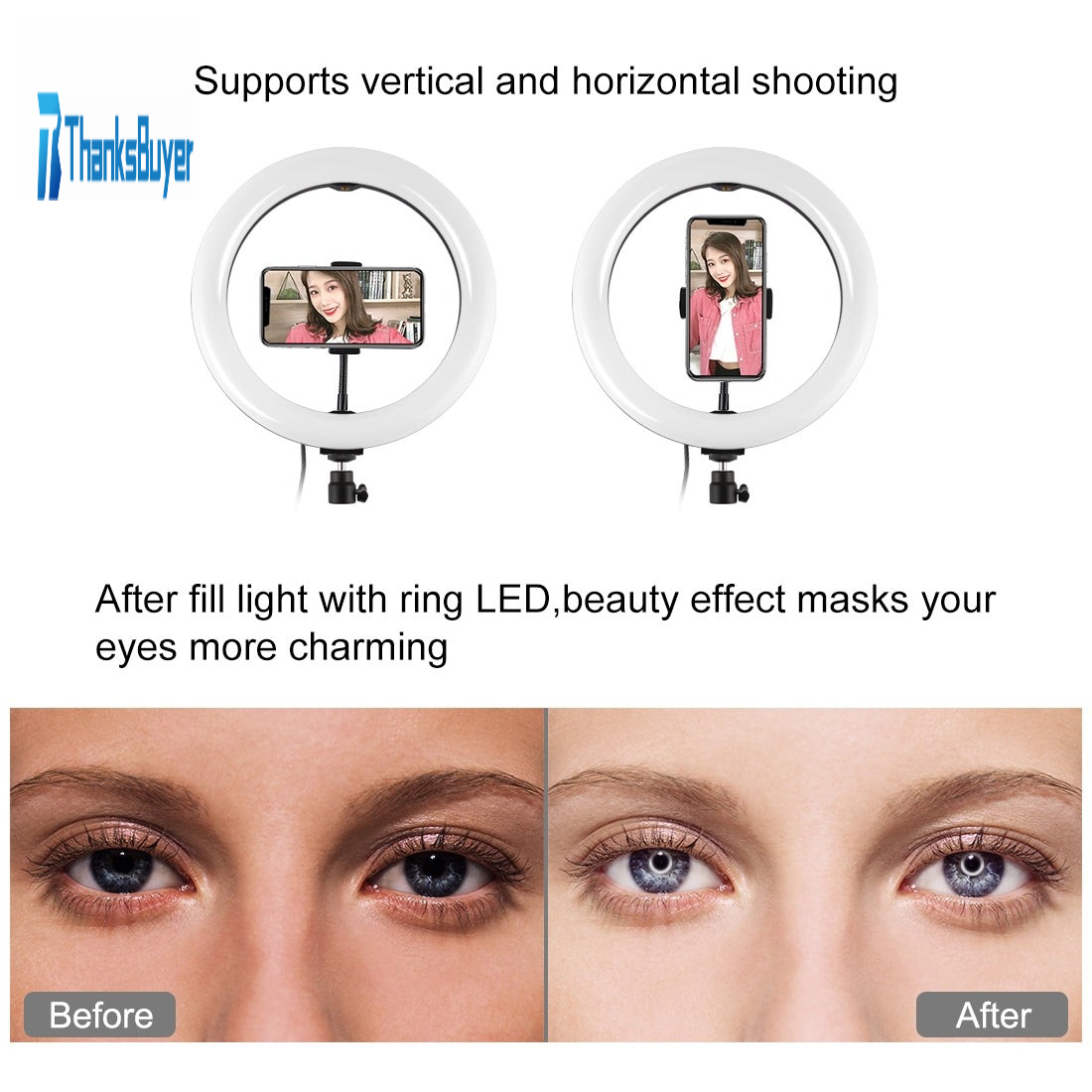 1. LED ring light can be mounted on the holder and take it anywhere, it can also be removed from the stand at any time, the tripod ball head can 360 degree rotating can free to adjust to any angle (The holder is not included).