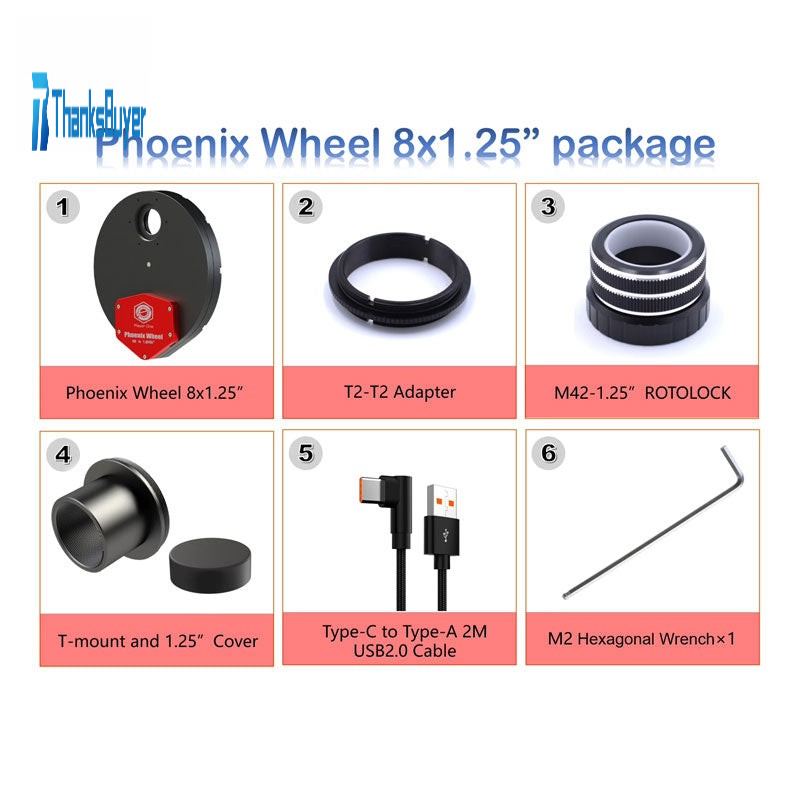 Filter positions of Phoenix Wheel 8x1.25" have M28.5 x 0.6mm female threads, supporting 1.25" filters. The thickness of the filter body should be less than 8.5mm (with thread thickness ≤ 2.5mm).