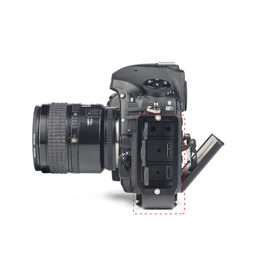 PNL-D850 custom L bracket for Nikon D850, one piece CNC cutting machined from light weight aircraft-grade aluminum, stain anodized surface finish for better abrasion and corrosion resistant.
