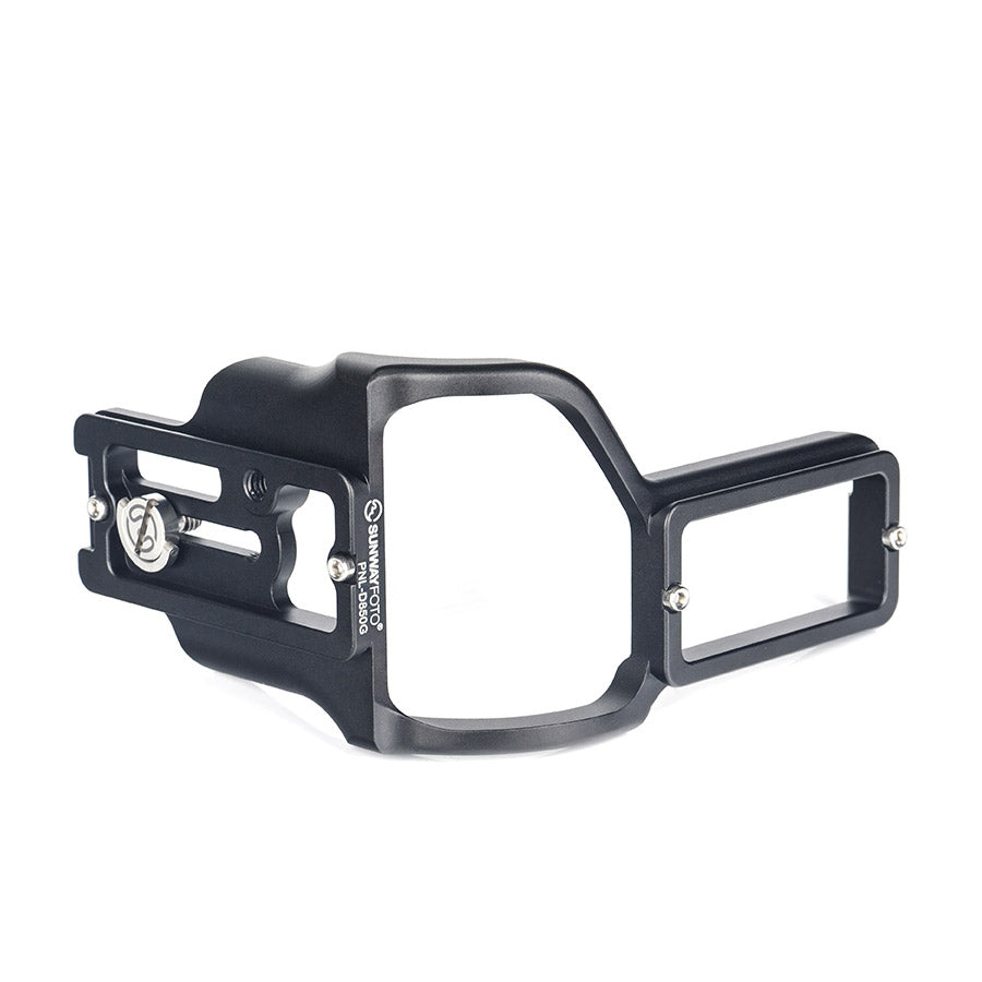 PNL-D850G Dedicated L-bracket with battery grip for Nikon D850, adopt CNC cutting machined from light weight aircraft-grade aluminum, stain anodized surface finish for better abrasion and corrosion resistant.