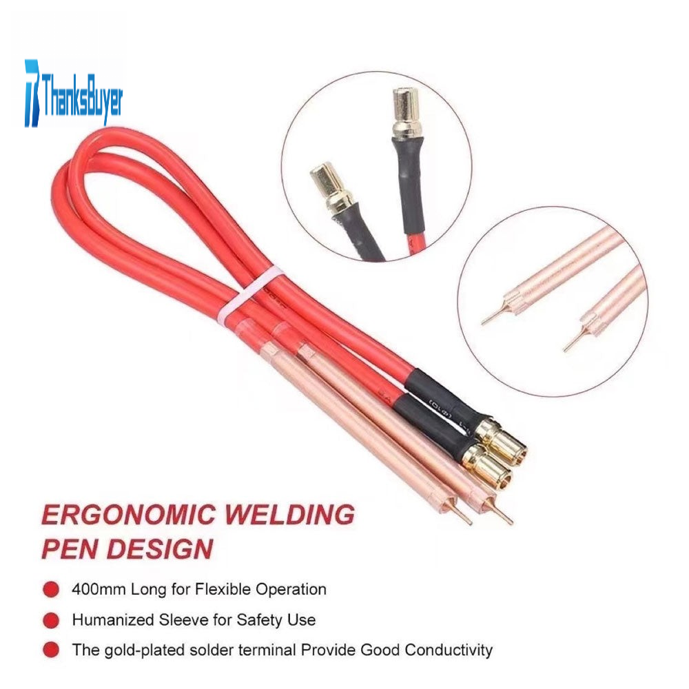 - Ergonomic Welding Pen Design -- Flexible 400mm long gold-plated spot welding pen with humanized sleeve for safety operation and ensure good conductivity.