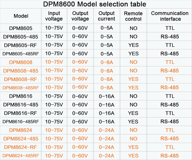- Power Supply Communications Interface: DPM8616-RF is designed with TTL communications port.