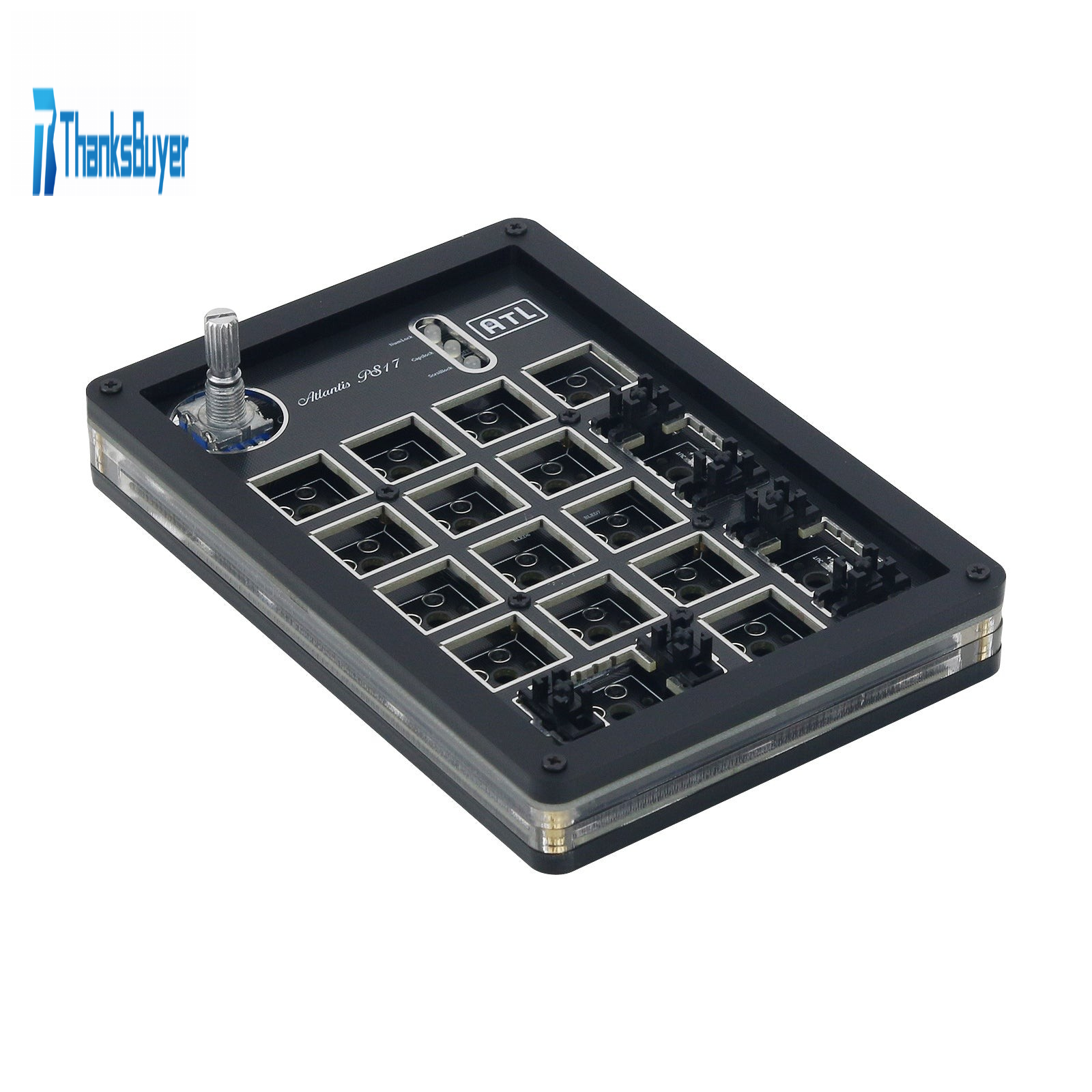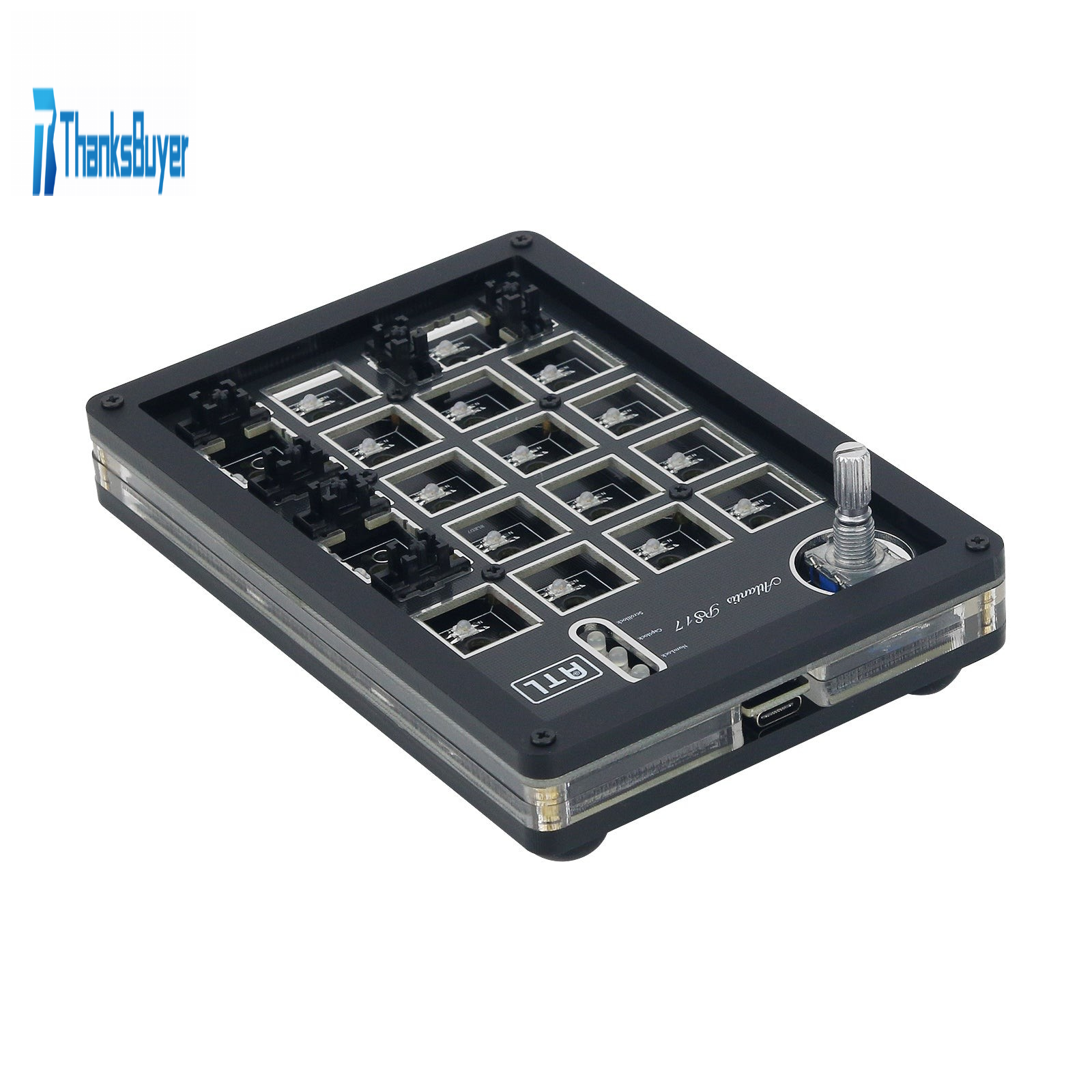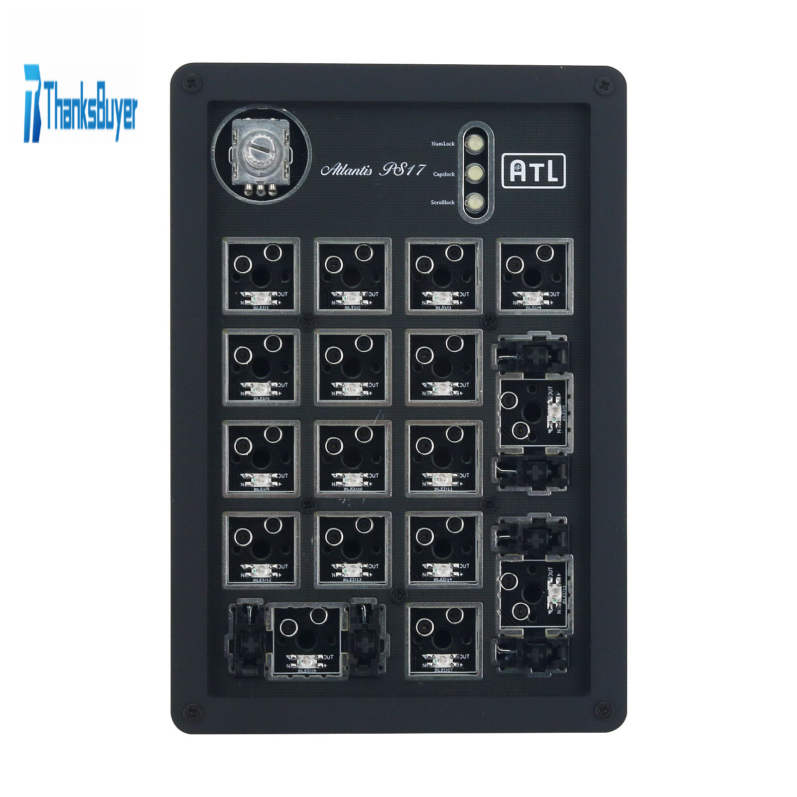 - 17 hot-swappable sockets with an EC11 clickable rotary encoder