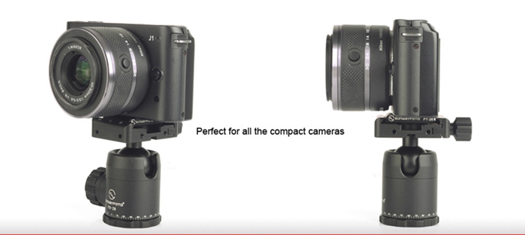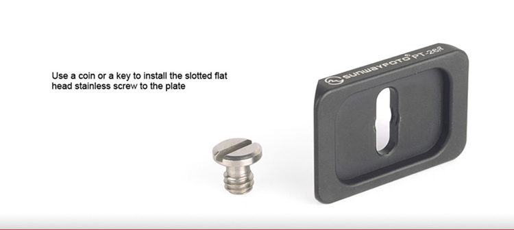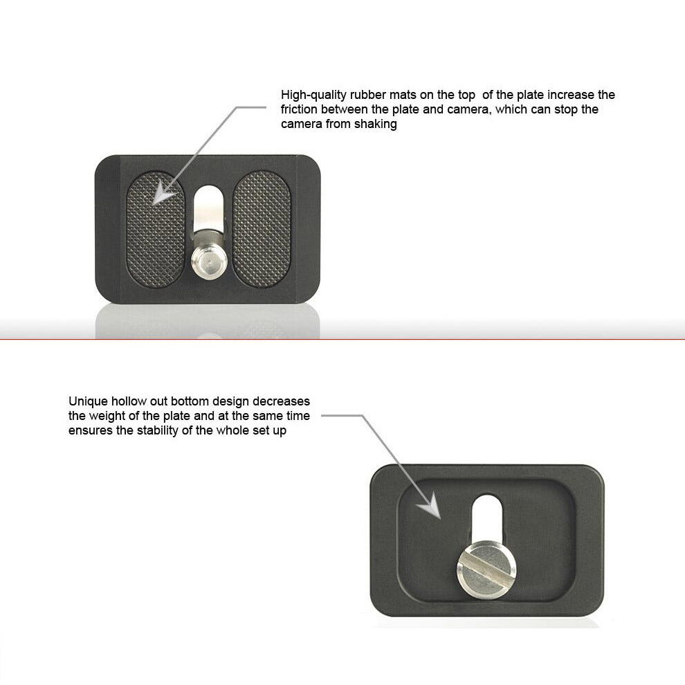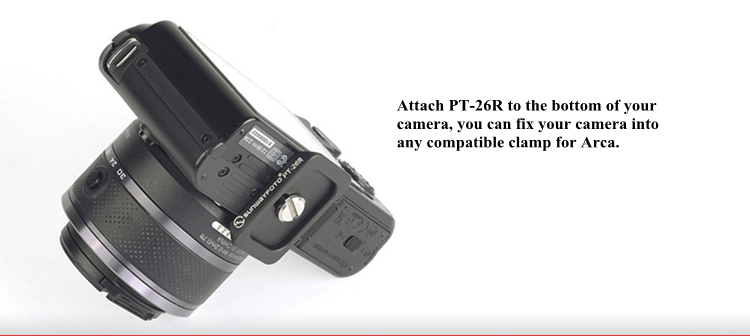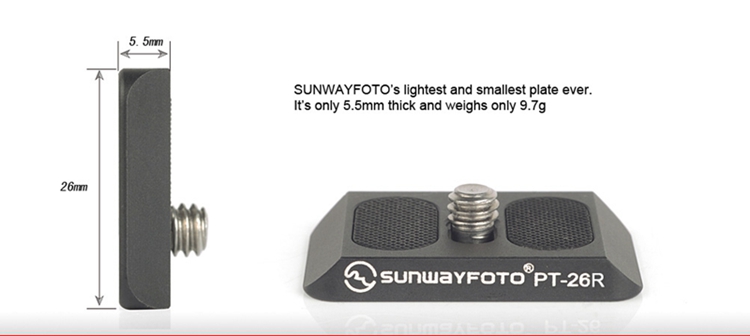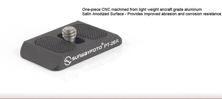 PT-26R universal quick release plate, one piece CNC cutting machined from light weight aircraft-grade aluminum, stain anodized surface finish for better abrasion and corrosion resistant. For Arca-Swiss style, ideal for compact camera.