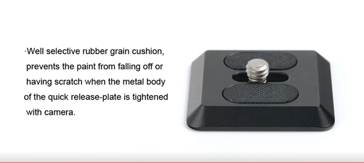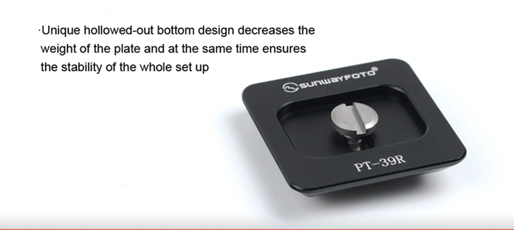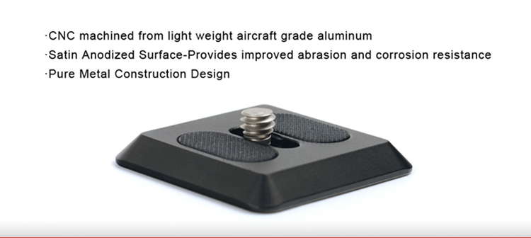 PT-39R universal quick release plate, one piece CNC cutting machined from light weight aircraft-grade aluminum, stain anodized surface finish for better abrasion and corrosion resistant. For Arca-Swiss style, ideal for compact camera.