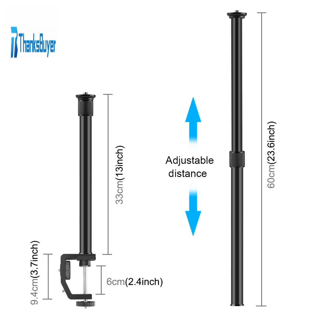 PU3063B C Clamp Mount Light Stand Central Shaft Extension Rod Camera Monopod 33-60CM/13-23.6"