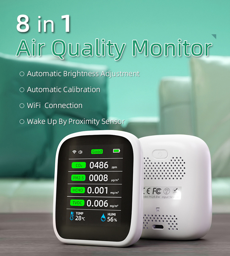 PV28-CW 8-in-1 Air Quality Monitor Detector for CO2 PM1.0/PM2.5/PM10 HCHO TVOC Temperature Humidity