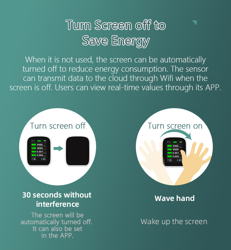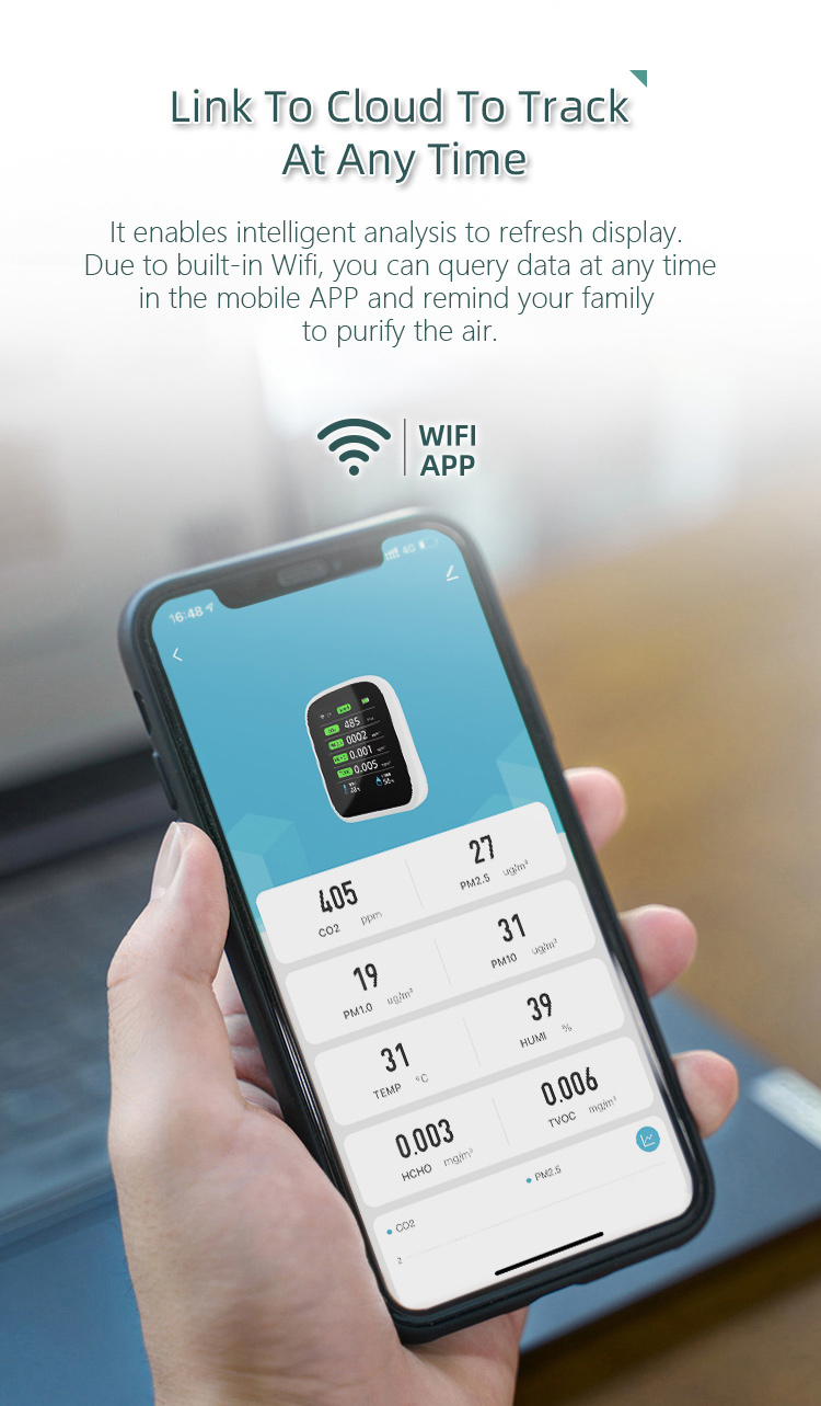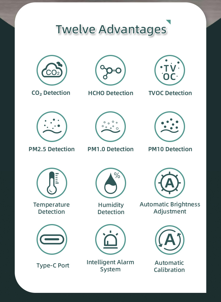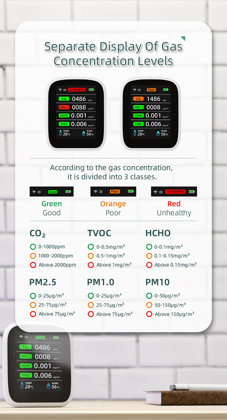 - TVOC measurement range: 0 ~ 9.999mg/m³