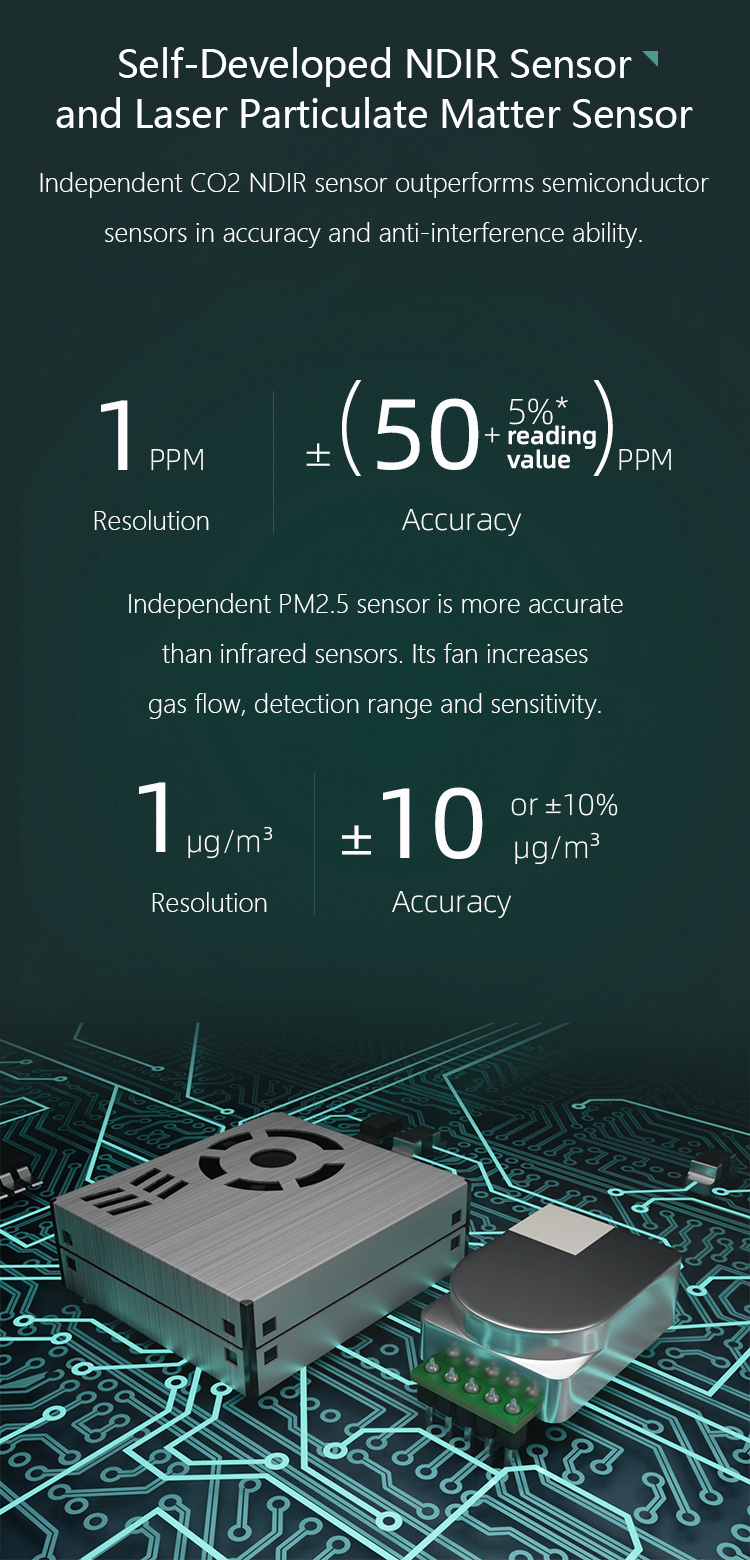 - Sensors: NDIR, laser particulate matter, semiconductor and optical sensors