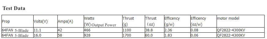 - Motor model: QF2822-4300KV