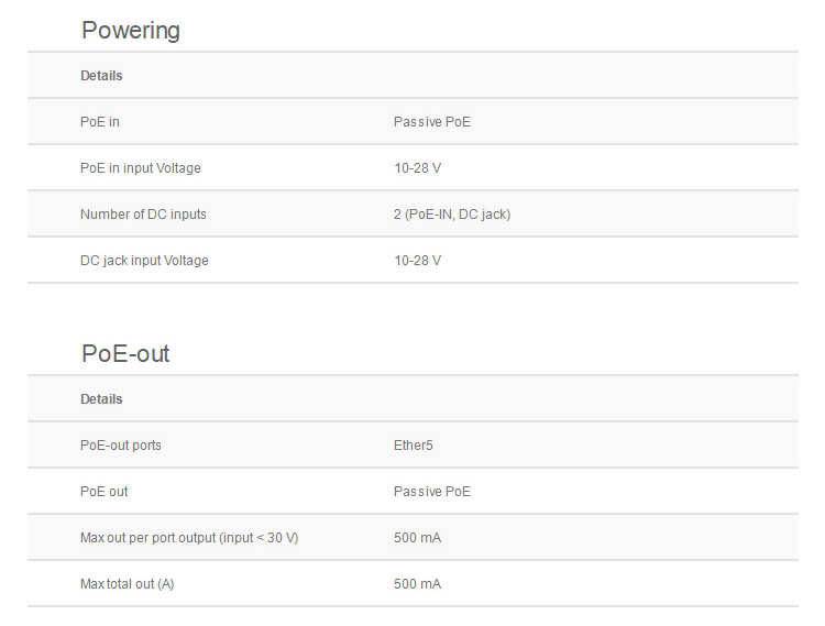 HAP ac lite can be powered using a power adapter or POE. Port 5 supports POE same-voltage output, and the maximum load on the port is 500mA. HAP ac lite includes default configuration so it can automatically obtain IP and connect to the Internet just by plugging in an Internet cable and power supply.