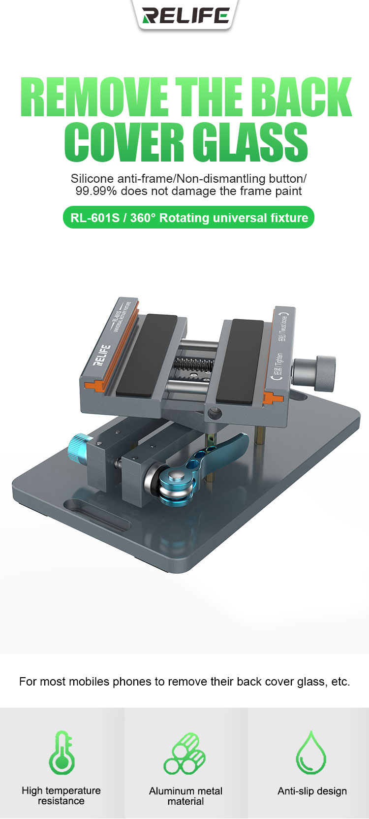 RELIFE RL-601S 360° Universal Rotary Fixture Phone Back Cover Glass Remover without Damage to Paint
