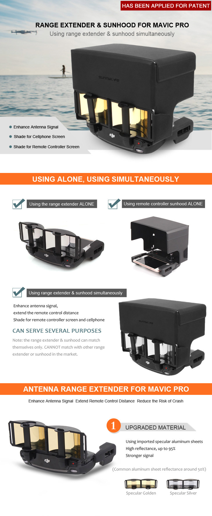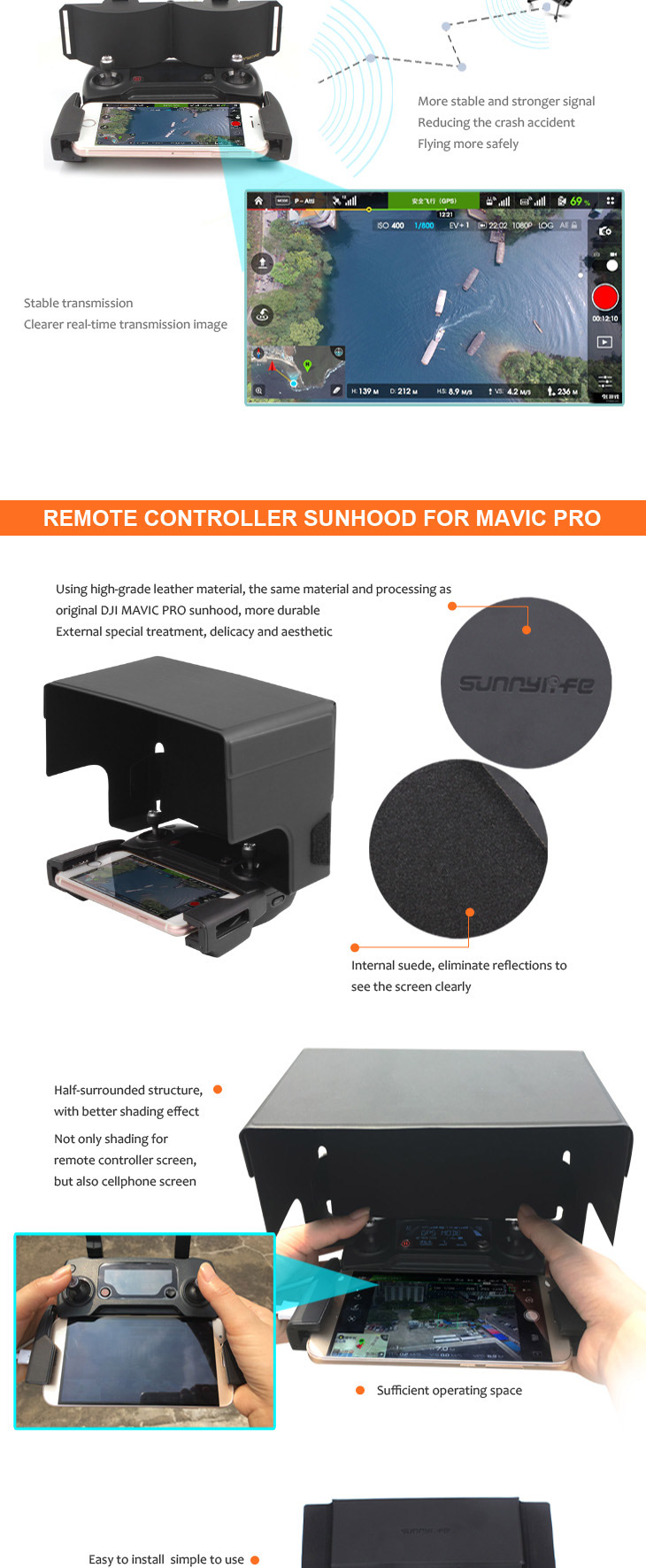 Remote Control Signal Booster Antenna Range Extender + Sun Shade Hood for DJI Mavic Mini Air Spark