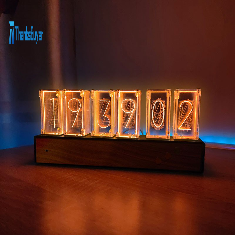 RGB Pseudo Glow Tube Clock Creative E-sports Room Bedroom Decoration with Walnut Metal Frame