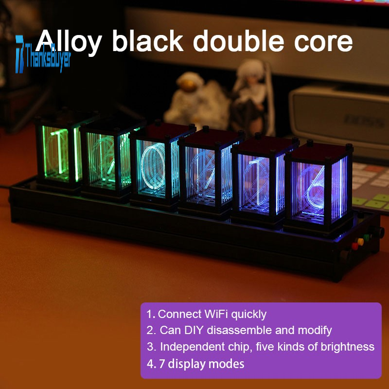 RGB Pseudo Glow Tube Clock Digital Clock Dual Imported Chip Accurate Time Synchronization Black