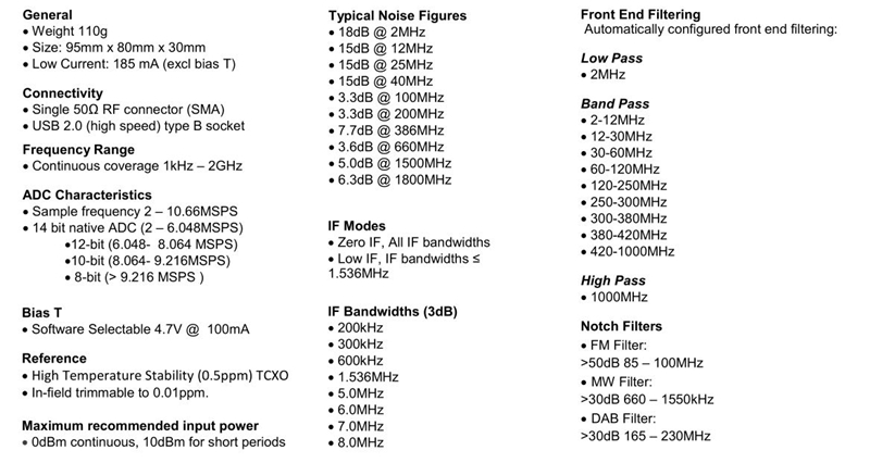 It is a powerful wideband full featured 14-bit SDR which covers the RF spectrum from 1kHz to 2GHz.