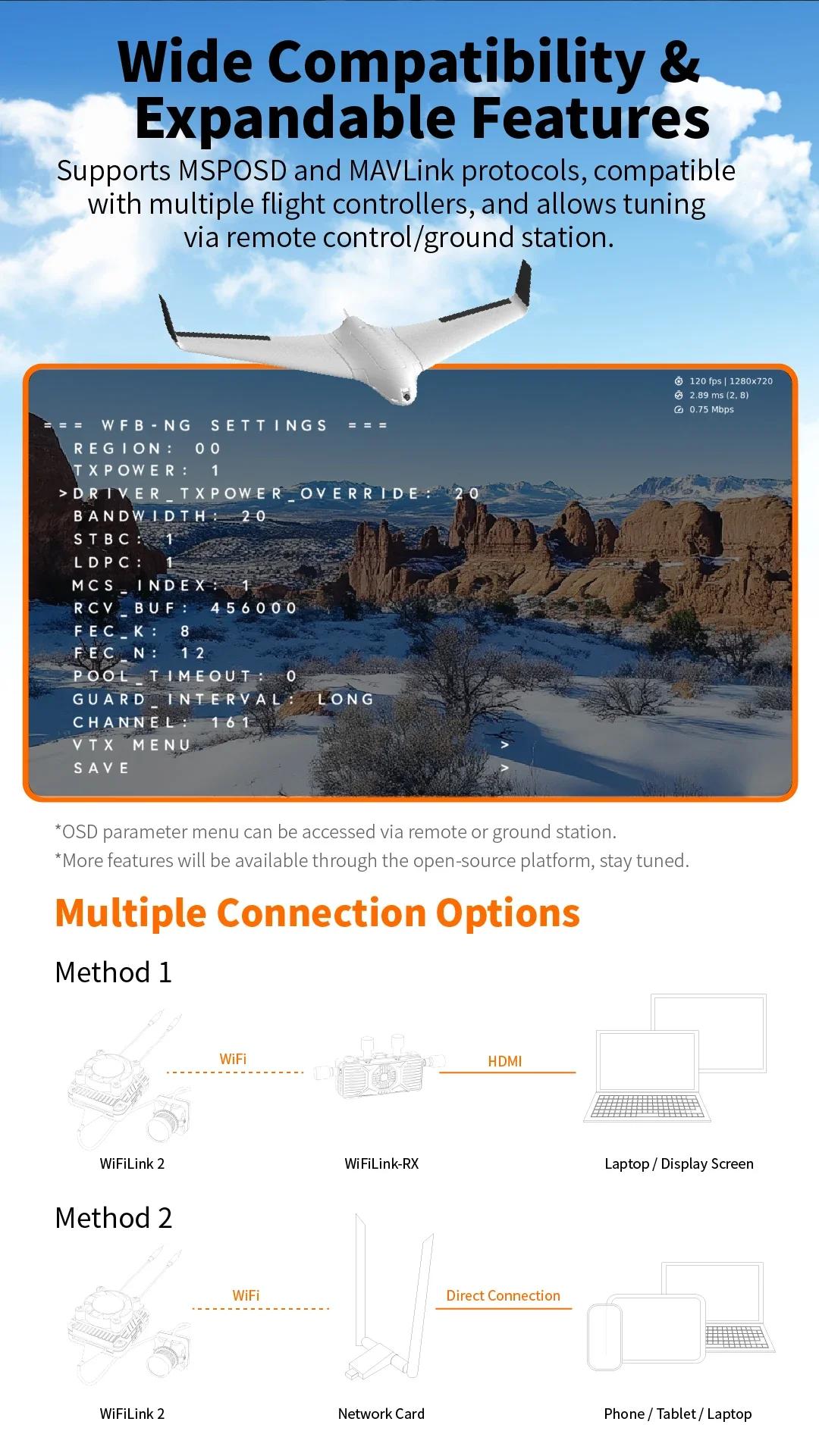 RunCam WiFiLink2 HD FPV VTX Air Unit 120FPS Based on OpenIPC Support Audio and Video Recording Compatible with MSPOSD/MAVLink