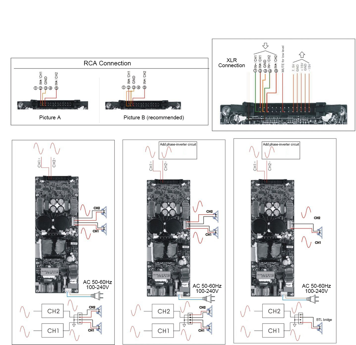 - AC 110~230V, 500W*2 at 4ohm and 200W at 8ohm