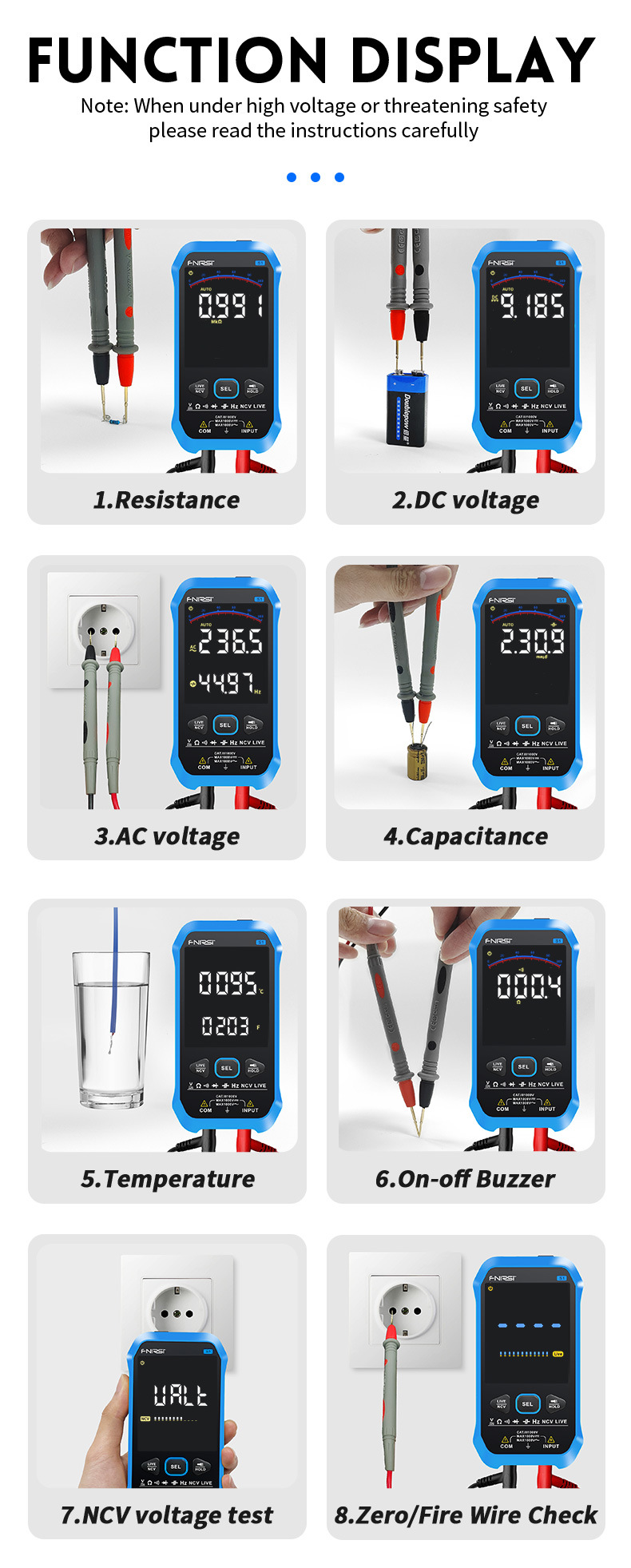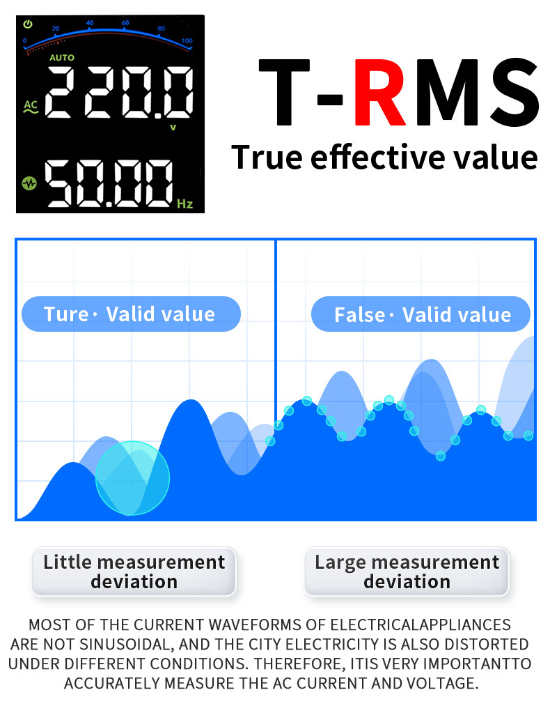 - This product is a handheld large-screen digital display smart multimeter. It has the advantages of fast measurement data, large-screen LCD dual display, lighting, and easy reading by users. It has functions such as overload protection and battery undervoltage indication. Whether it is used by professionals, factories, schools, hobbyists or families, it is a rational think of the multi-function instrument. The overvoltage standard is CAT III 1000V.