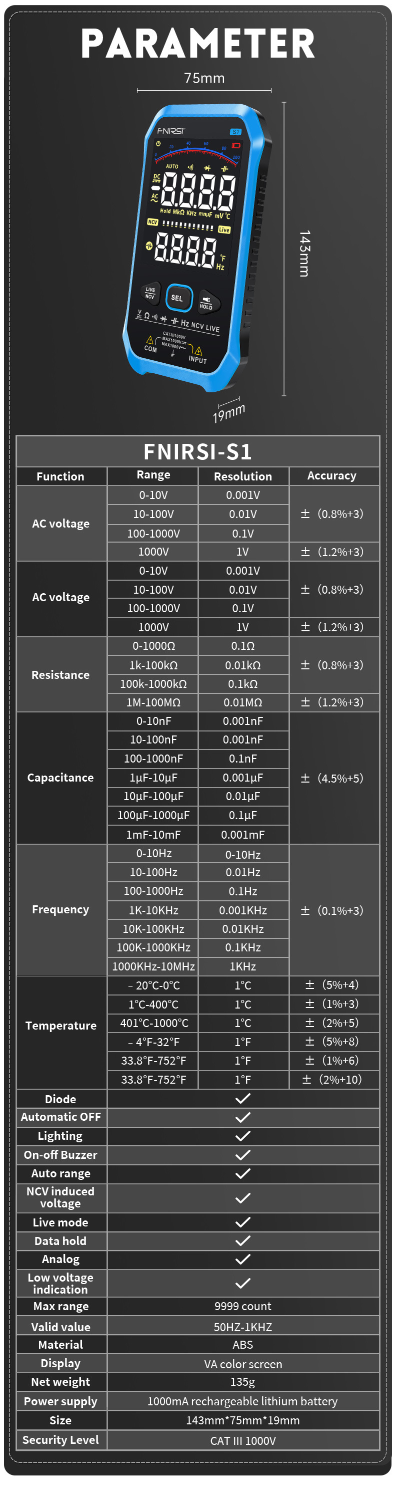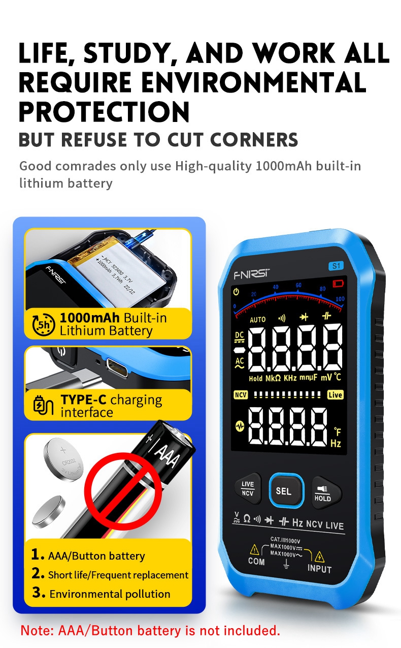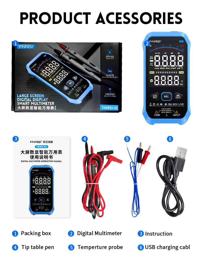 S1 Intelligent Digital Multimeter High Precision Automatic Portable NCV Induced Voltage with HD Reverse Display for FNIRSI