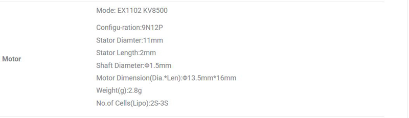 - 4 x EX1102 KV8500 Motors 1.5mm Shaft