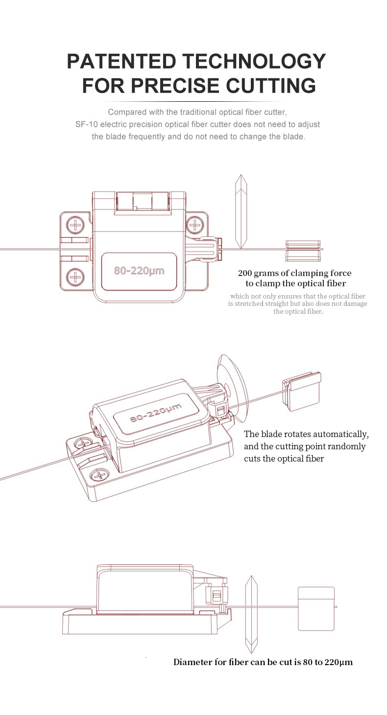 SF-10 Electric Precision Optical Fiber Cleaver Fiber Optic Cleaver Cutter Perfect For Fiber 80-220μm