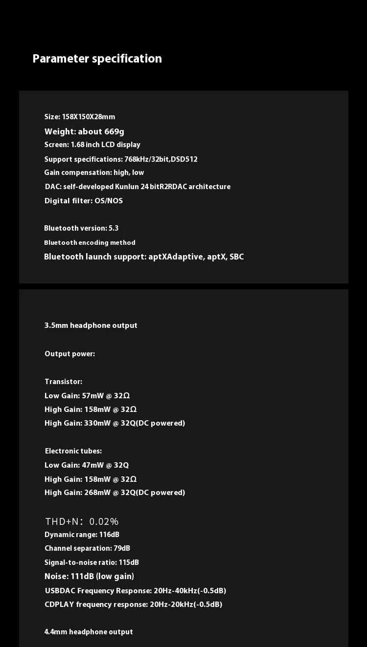 - 3.5mm & 4.4mm headphone outputs.