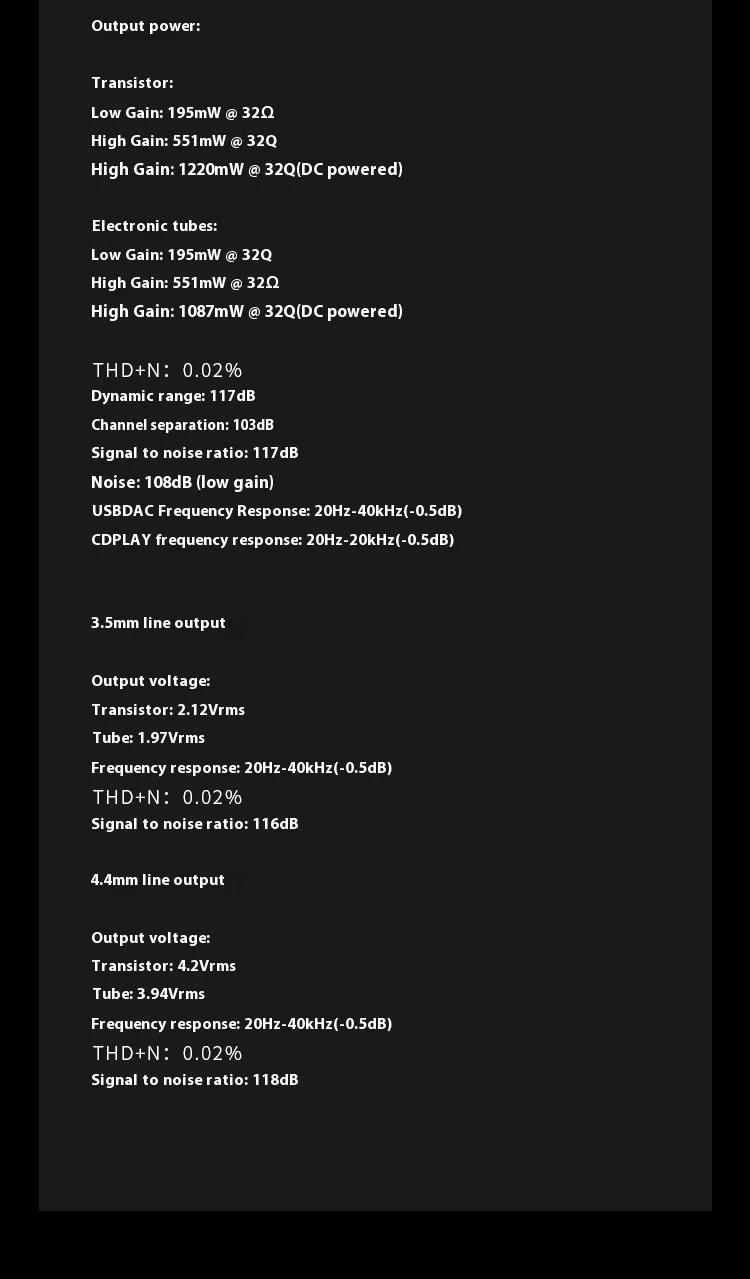 - Dual JAN6418 tube output & TPA6120 headphone amplifier.