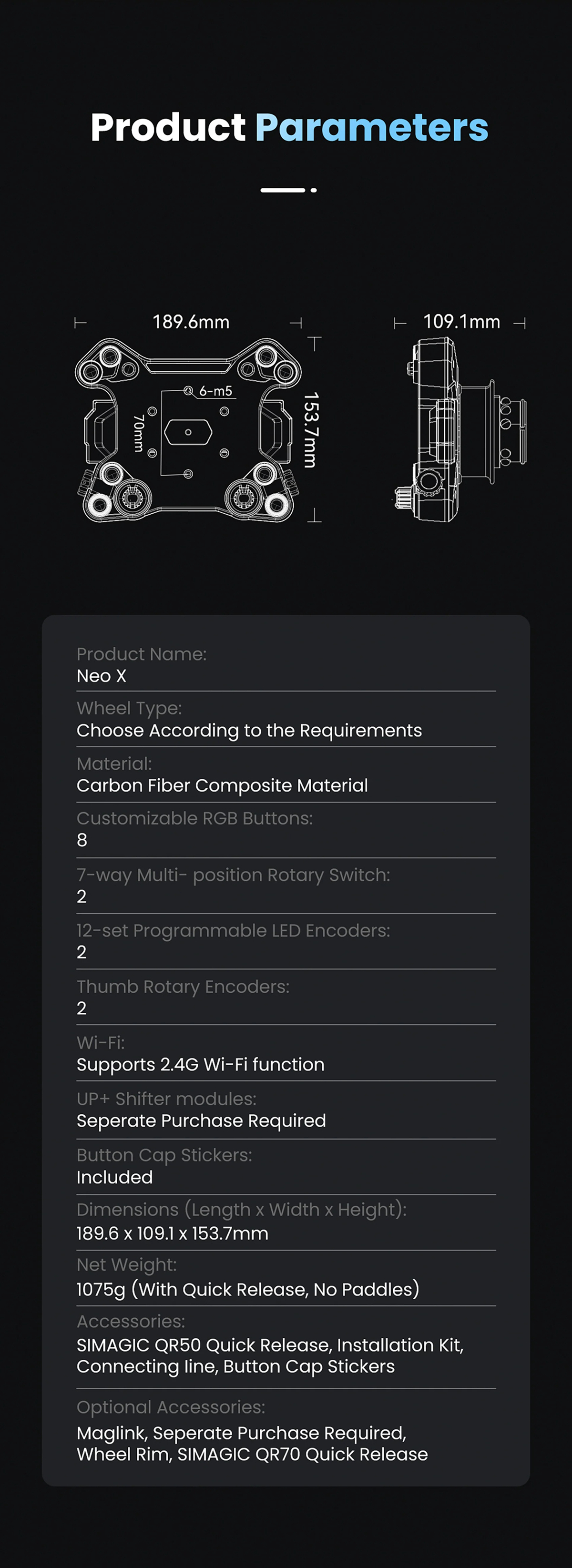 Simagic Neo X Hub Racing Steering Wheel Hub (without Paddles) Supports 2.4G Wifi for Racing Wheels