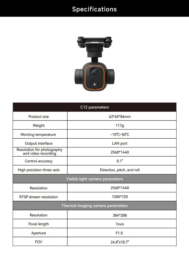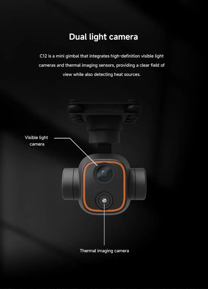 SKYDROID C12 Thermal Imaging 2K HD Digital PTZ 3-Axis Stable Dual Light FPV Gimbal Camera for FPV Racing Drones