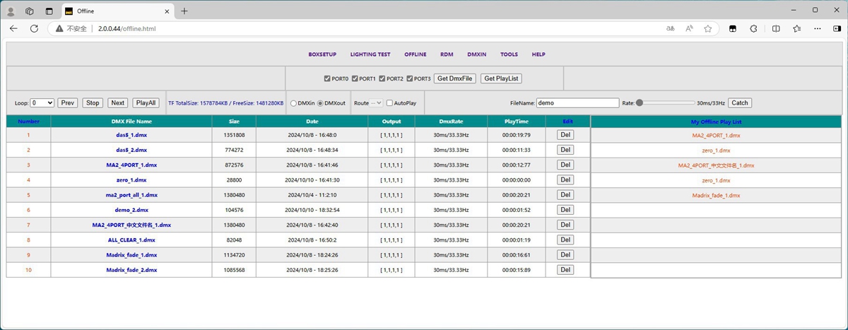 6: Built-in RTC time, the box will automatically time when it is power on, and the time will be automatically synchronized through the webui, which is convenient to record the real time when saving the DMX file, and the basis for sorting the file by time.