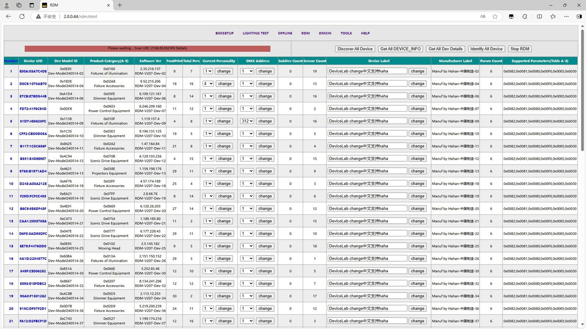 4: Support for RDM function, RDM function includes: find and display all the details of the lighting fixture, modify the lighting fixture address, modify the lighting fixture mode, identify the device, mute device, modify the device label (support Chinese) and so on, the RDM table can be sorted by different attributes, can also be downloaded to the local, saved as an excel file, printed out, convenient for the gaffer to consult.