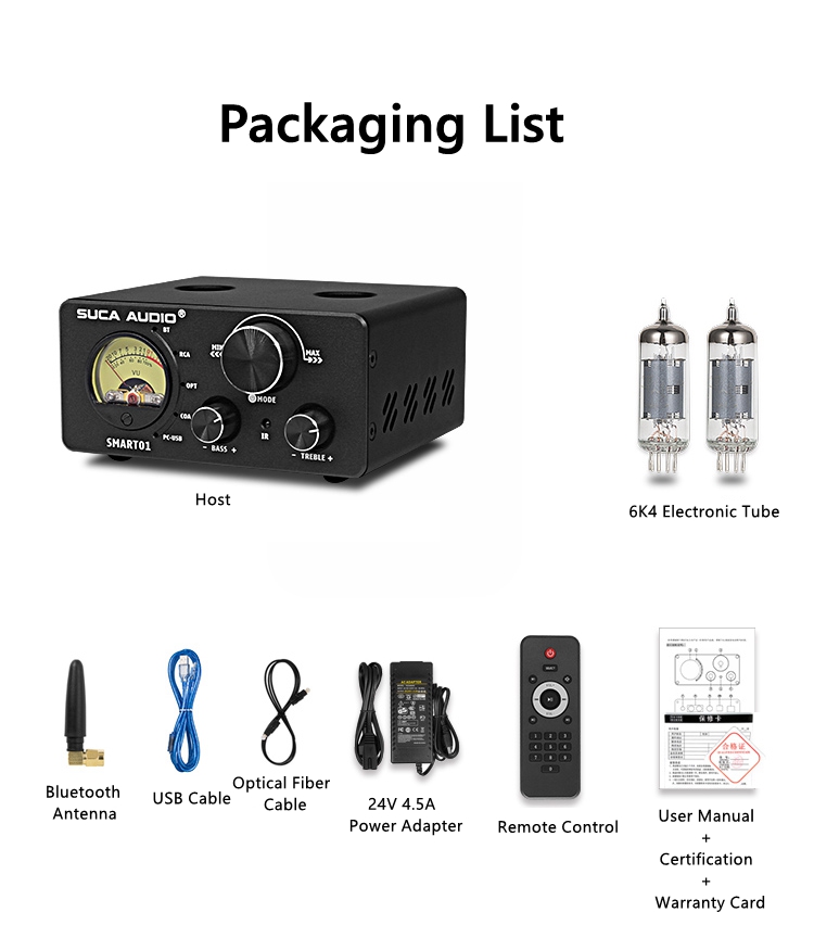 SMART01 Standard Version Power Amplifier Bluetooth HiFi Electronic Power Amplifier with 6K4 Electronic Tube