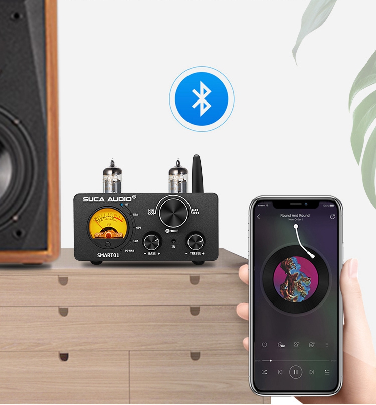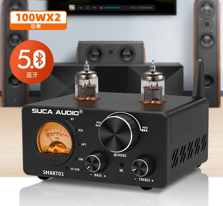 SMART01 Upgrade Version Power Amplifier Bluetooth HiFi Electronic Power Amplifier with 5654 Electronic Tube