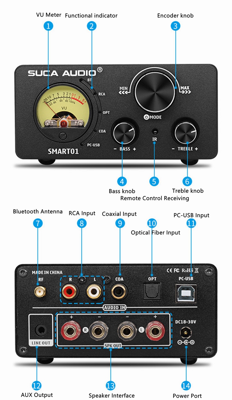 - Support multiple digital audio input, such as Bluetooth 5.0/USB/Coaxial/Optical Fiber/Stereo RCA