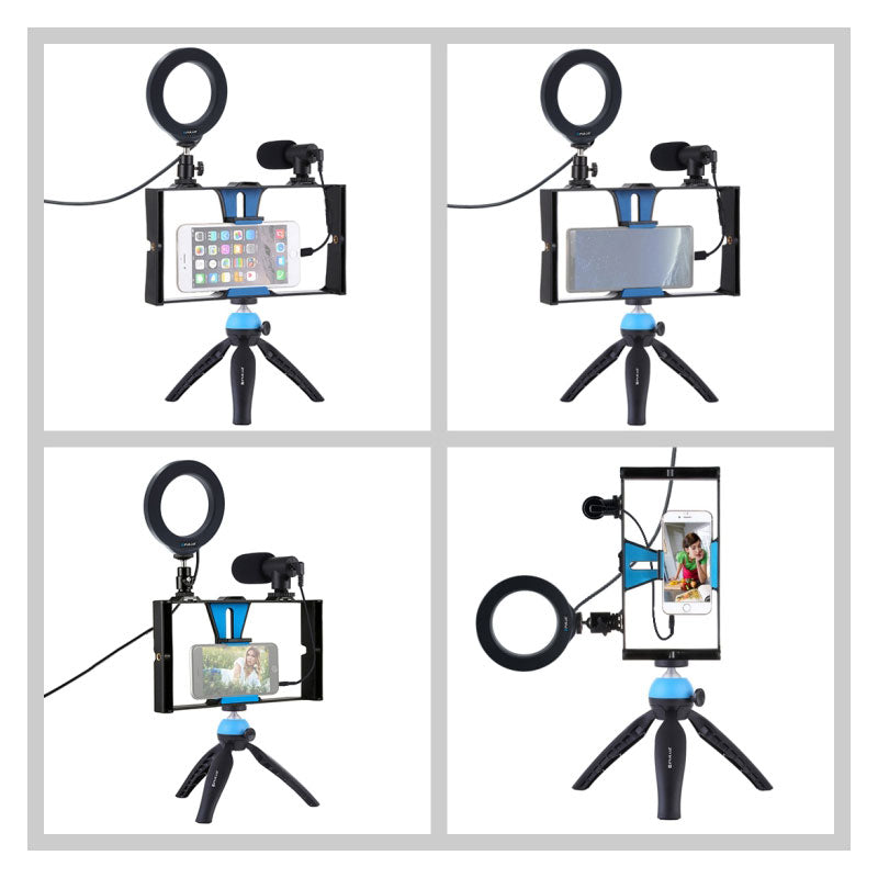 Smartphone Video Rig w/ 4.7" Ring Light & Microphone & Tripod & Tripod Head For iPhone Huawei PKT3025