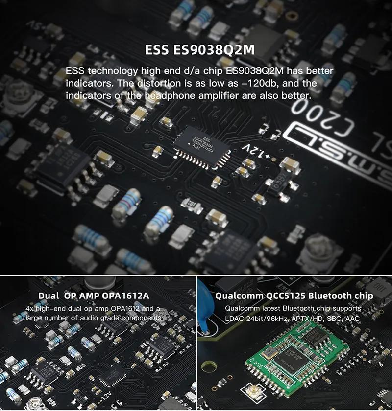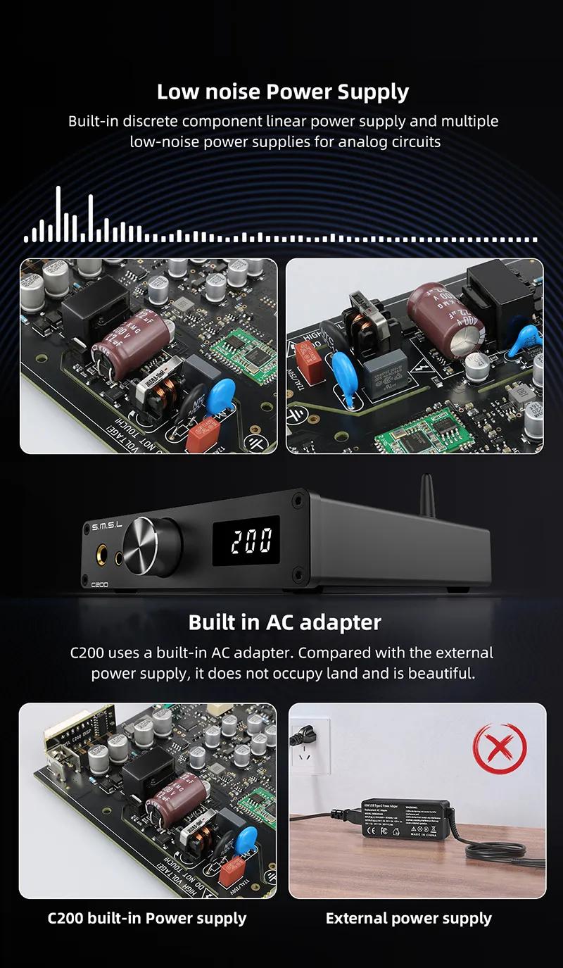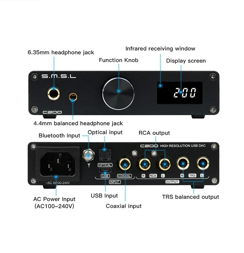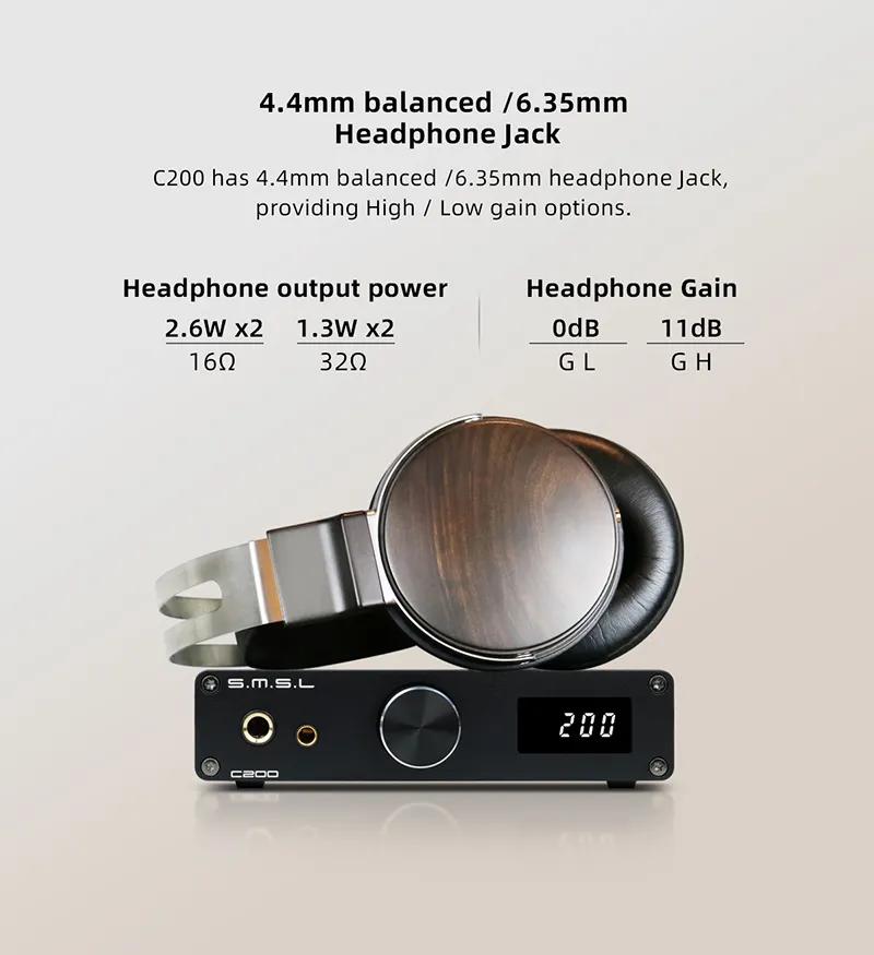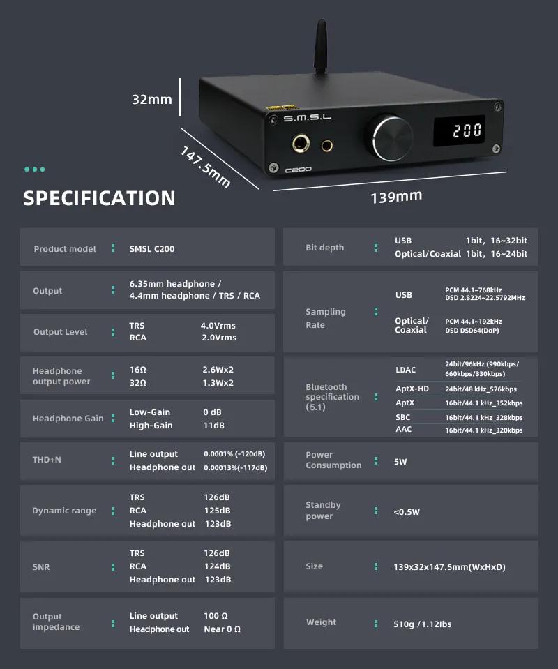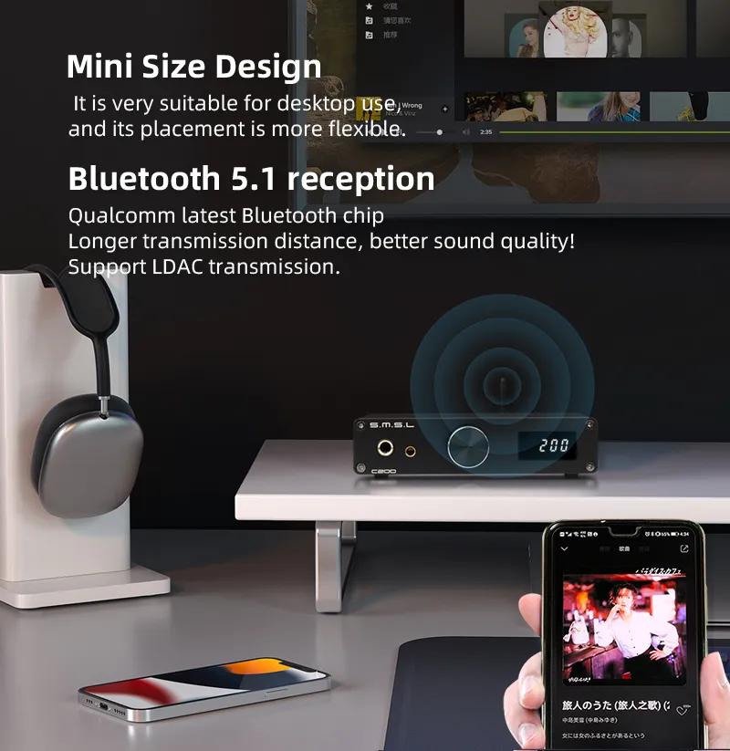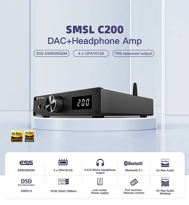 SMSL C200 Audio Decoder DAC Headphone Amplifier Integrated Machine ES9038Q2Mx2 Bluetooth5.0 Support for PS4/5