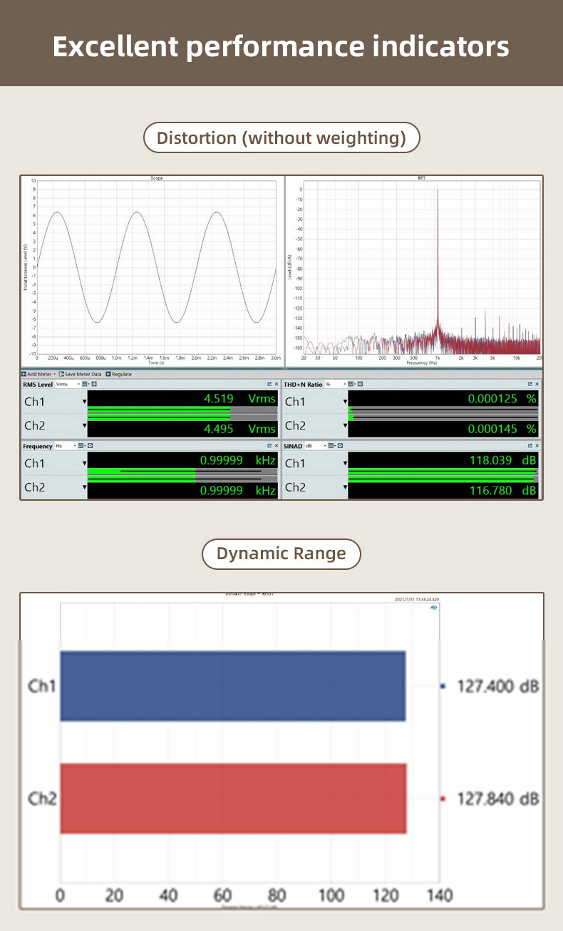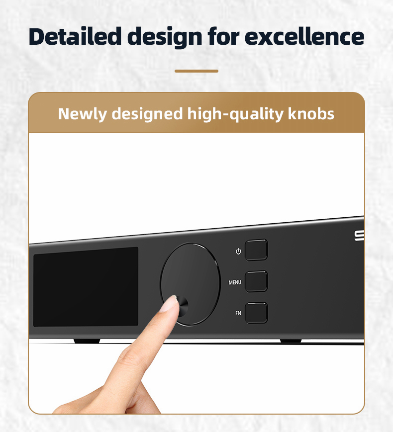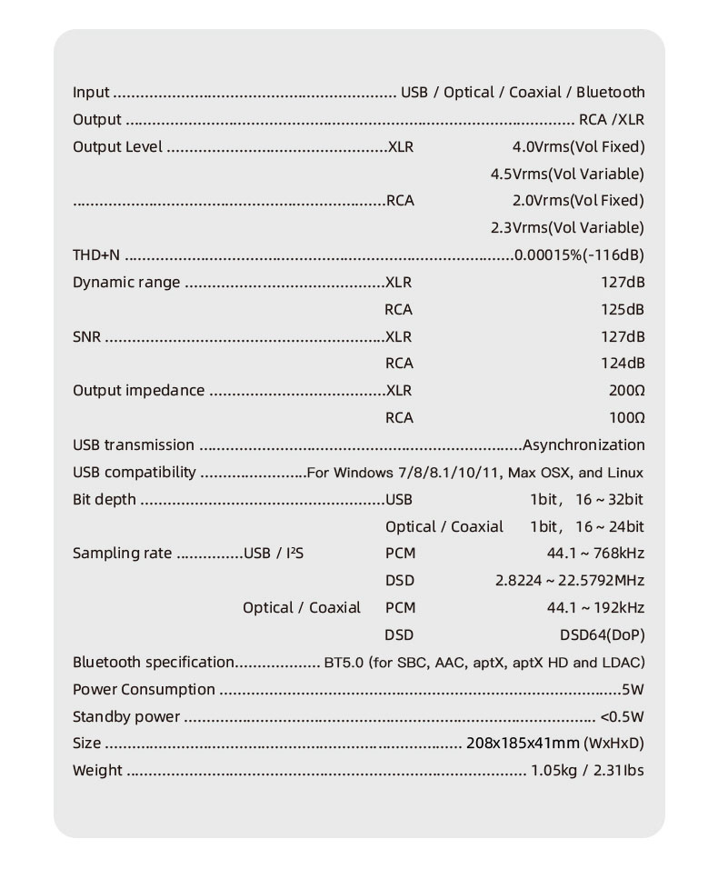 - Use flagship DAC chip BD34301EKV for Rohm, and fully optimize its performance to make its THD+N as low as -116dB