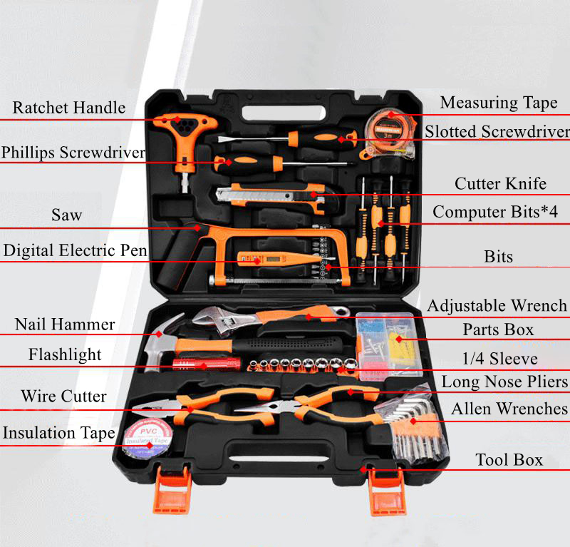 - Characteristics: The hand tools are highly combinable and easy to use. The variety is complete and the scope of application is wide. Good helper for home repairs