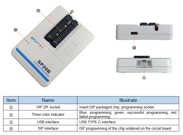 - Short circuit / overcurrent protection function can effectively protect the programmer or chip from accidental damage.
