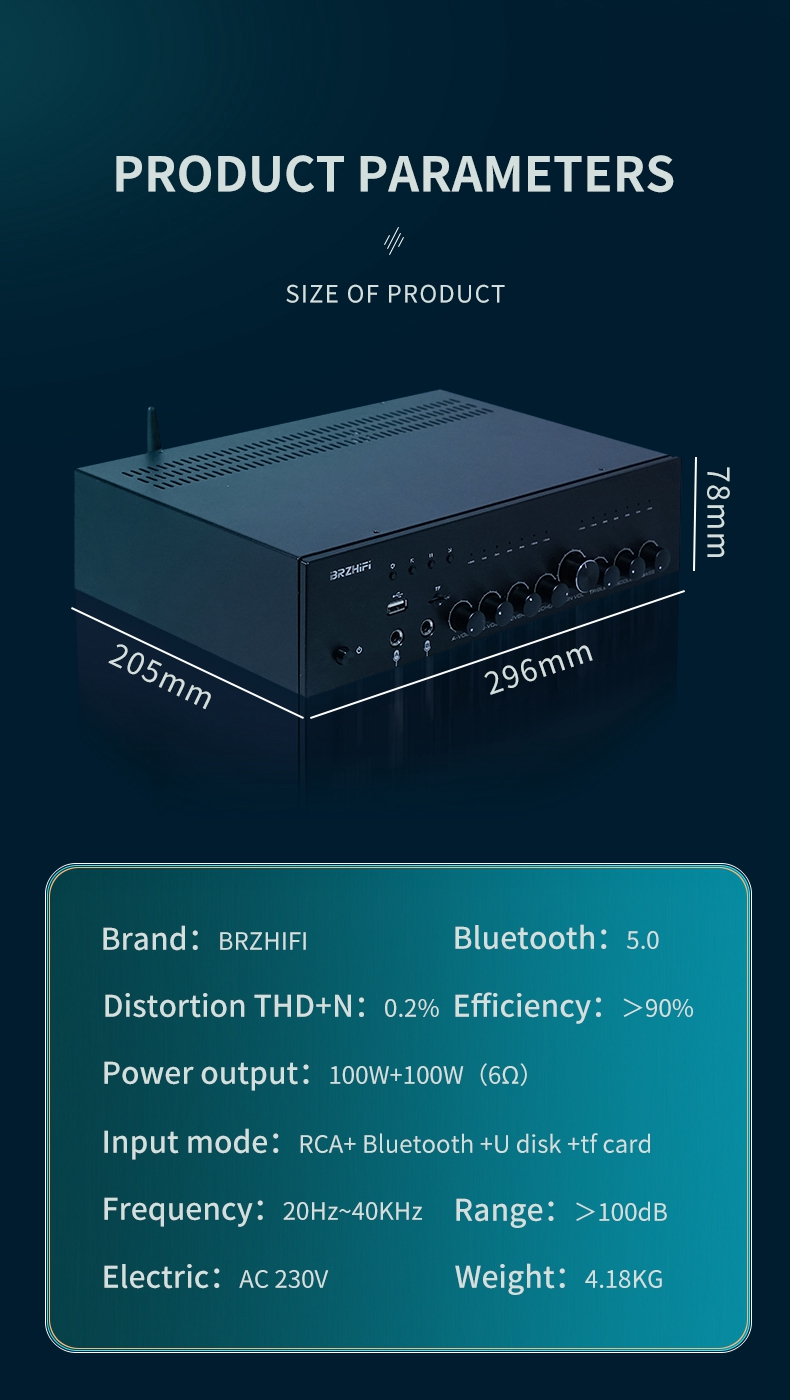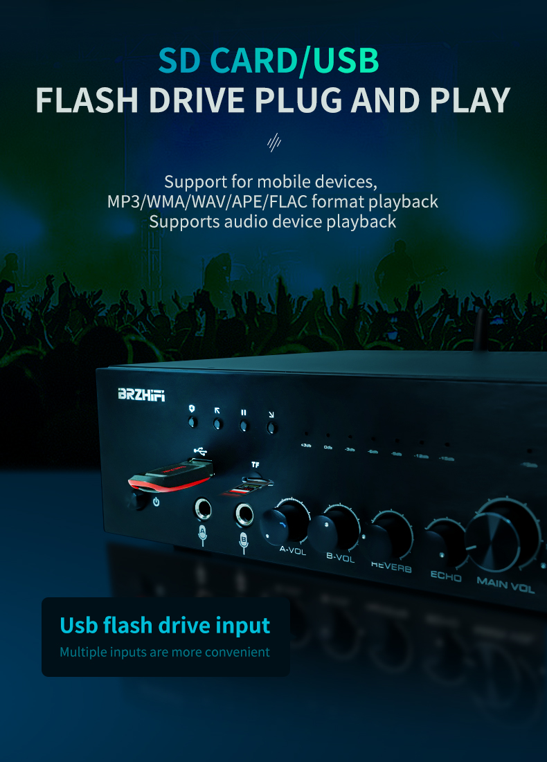 - Support SD card/USB input, MP3/WMA/WAV/APE/FLAC and other formats.