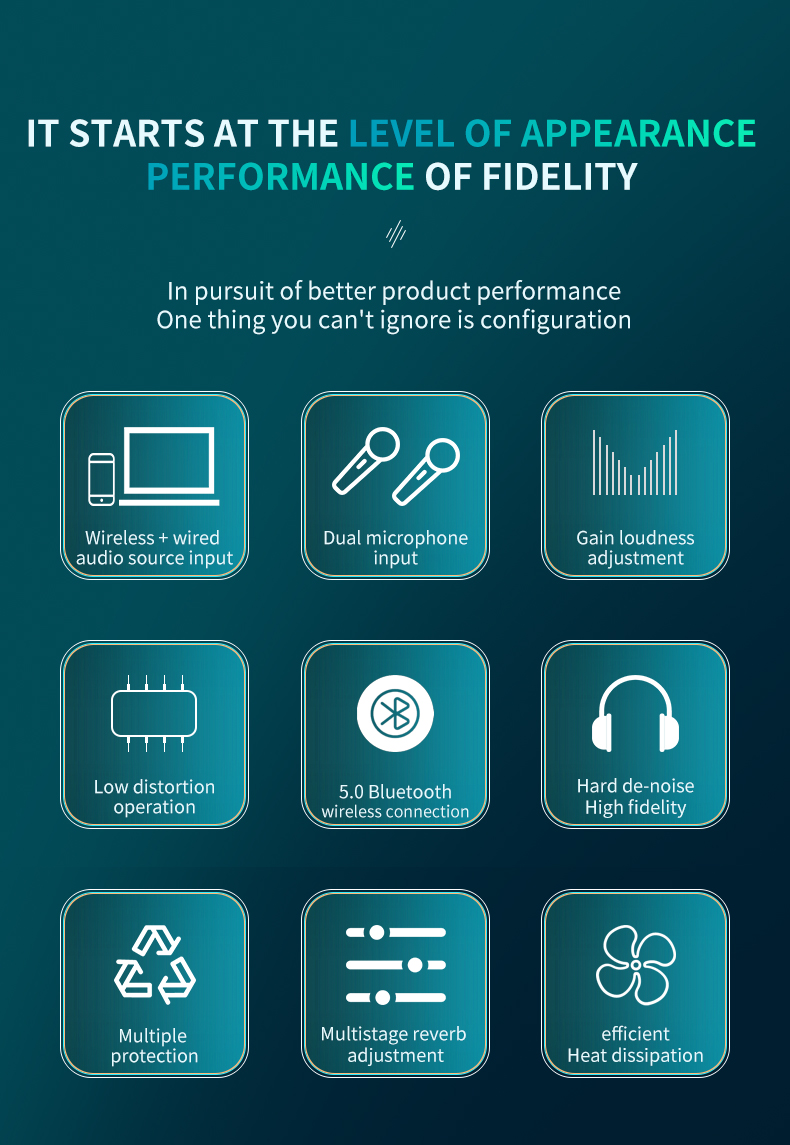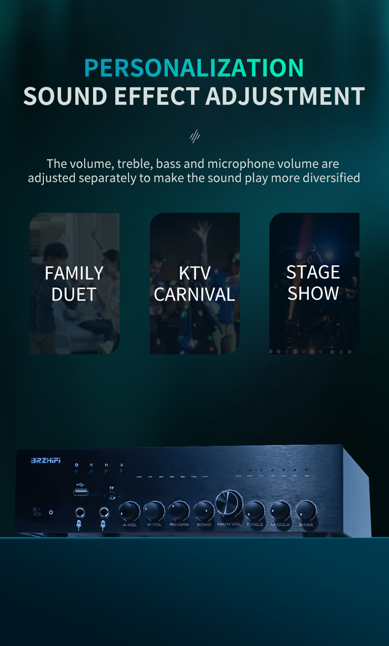 STK412-530 High Fidelity Bluetooth 5.0 Power Amplifier Support Dual Microphone Input Multi-function Karaoke